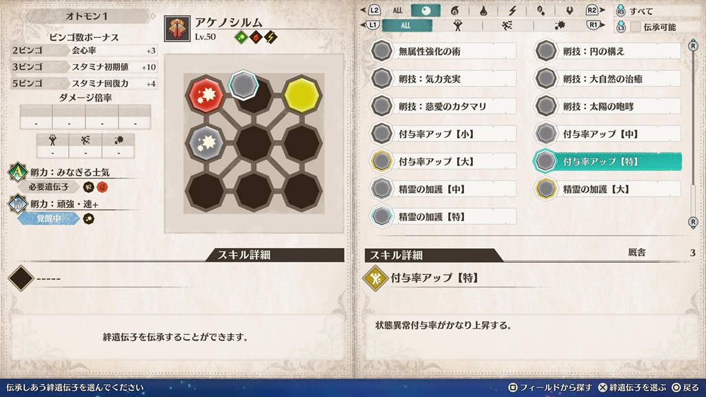 体験版から非常にお世話になっている付与率アップスキルです。