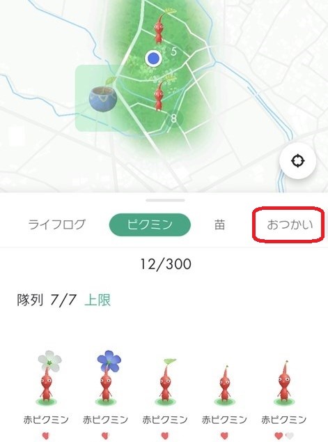 「おつかい」でピクミンの苗もゲットできるので、どんどん「おつかい」させたいです。