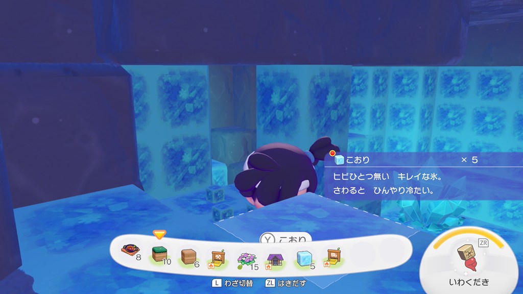 こおりは、けんちくキットを拾った滝の裏側で大量に手に入ります。