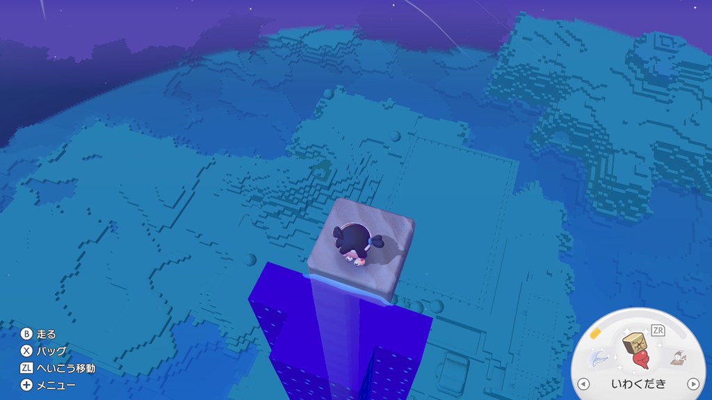 こうすることで、メタモンの足元にブロックを設置し続けることができます。高さは海面から最大99まで積むことができるようなので、ブロックは大量に持っていきましょう。