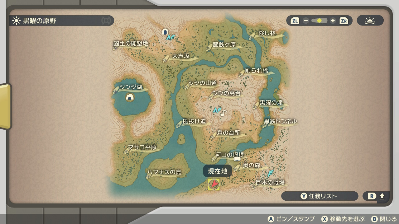 リーフィアは「黒曜の原野」の下の方にある苔の石の近くで進化が可能です。