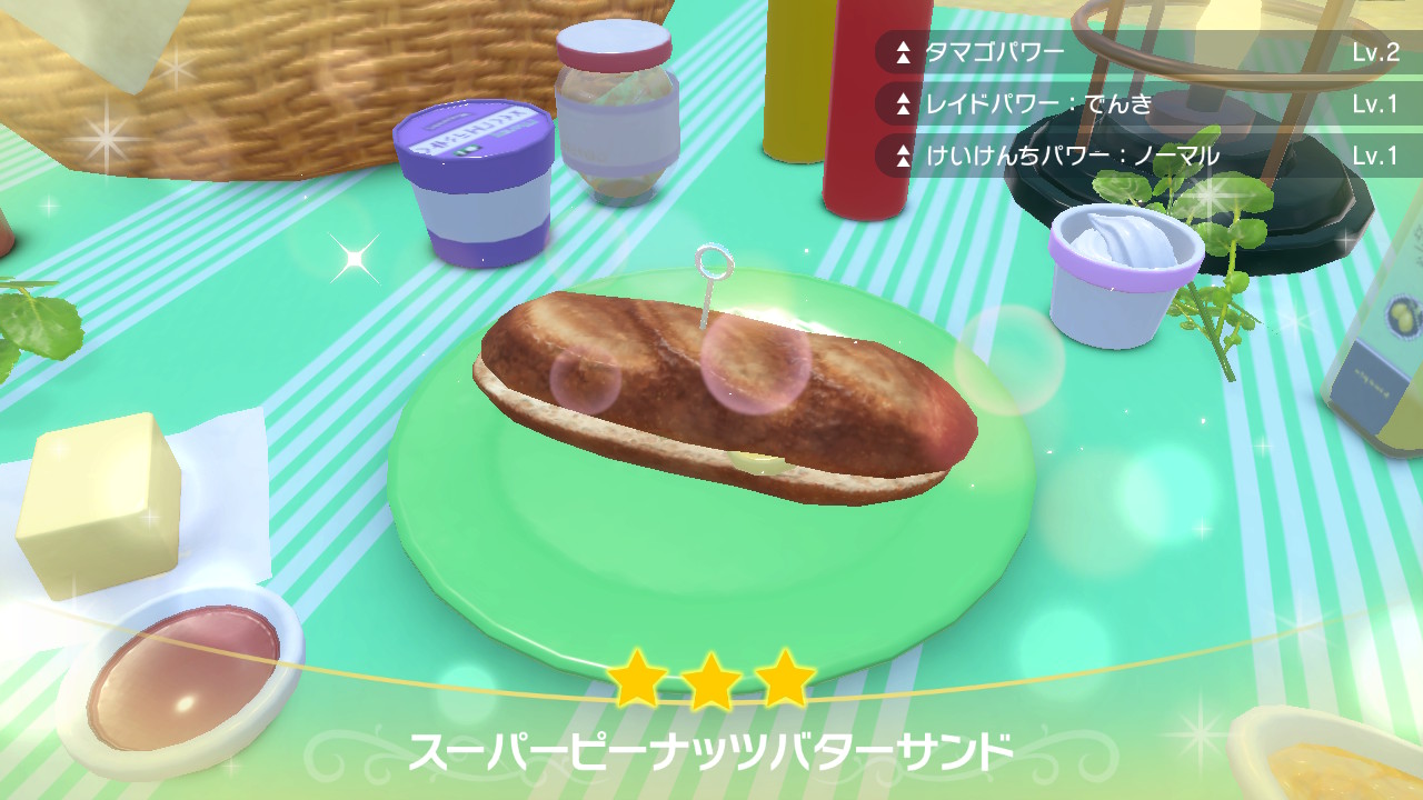 サンドイッチの効果は30分続く(十字キーの→で確認できる)ので、大体一度の料理で2回厳選することができます。