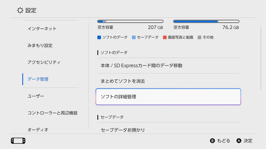 その中にある「まとめてソフトを消去」か「ソフトの詳細管理」を開きましょう。
