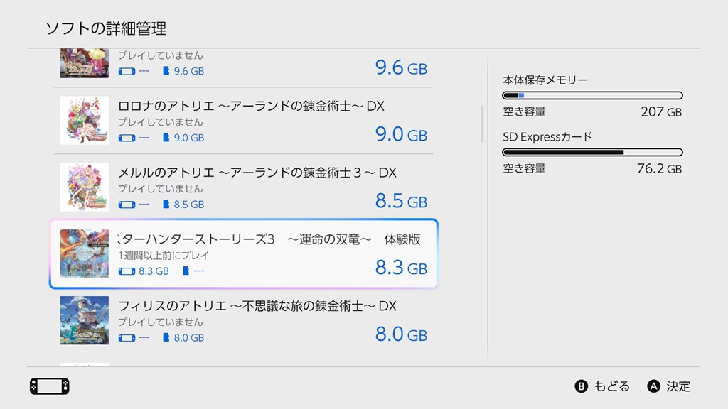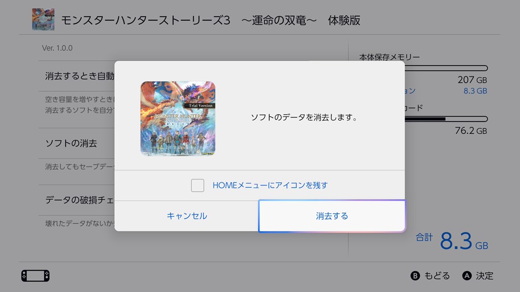 また、セーブデータは消えないので、体験版だけでなく遊ばなくなったゲームデータも同じやり方で削除しておくといいでしょう。